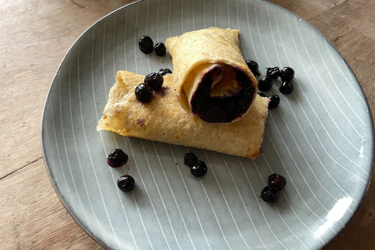 Server pannekaker med blåbærsyltetøy
