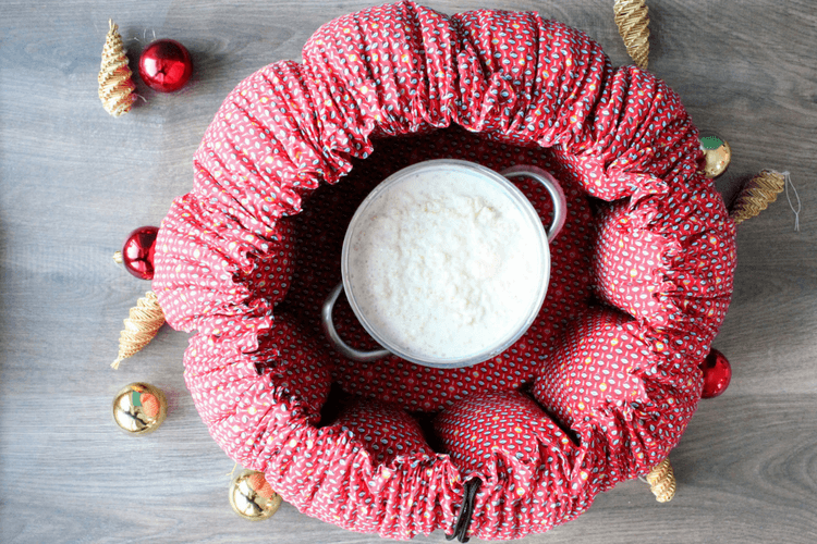 Denne grøten har vi laget i en Wonderbag. Den er en slow-cooker om ikke bruker strøm. Det fungerer nesten som å pakke inn grøten i en dyne. Noen gjør det og kaller det for dyne-grøt.